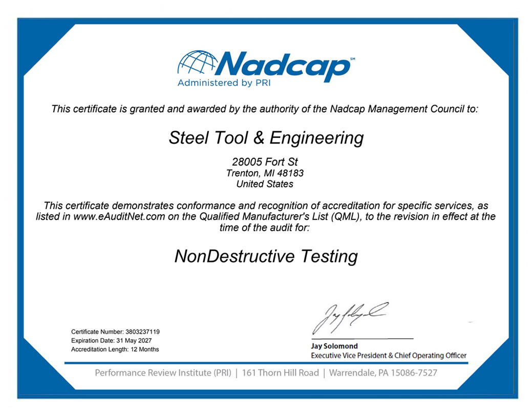 Steet Tool & Engineering maintains multiple certifications standards, including: